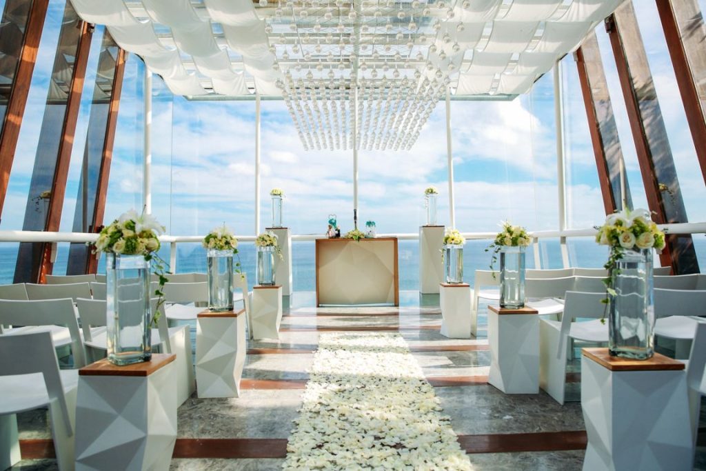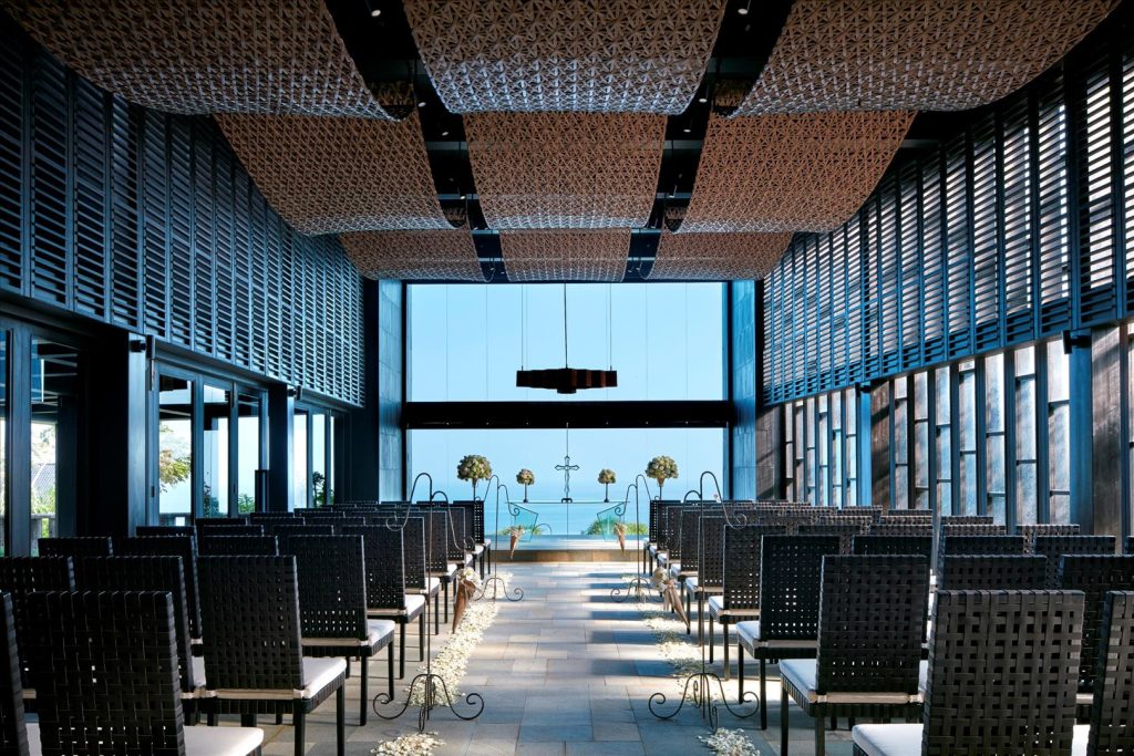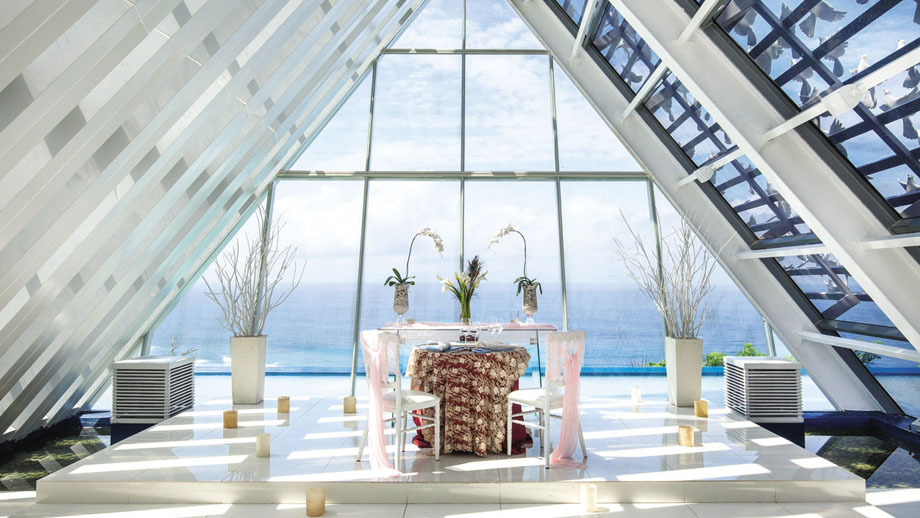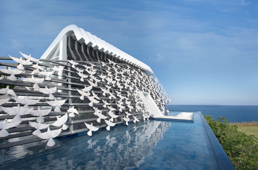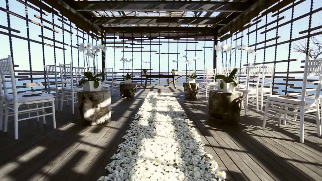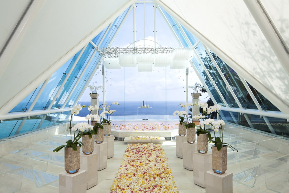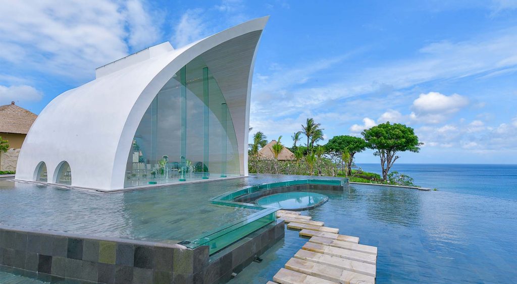 阿里拉烏魯瓦圖婚禮空中鳥巢,以其獨特的環保概念和極具辨識度的設計而備受矚目。度假村內的景觀亭由再生木構建,與周圍的自然環境完美融合。教堂位於一處高企的平原上的石灰峭壁,擁有天海景色,將峇里島的自然之美展現得淋灕盡致。涼亭般的建築設計與當地慵懶的步調相得益彰,散髮著濃郁的南洋風情。這裡曾是修傑楷和賈靜雯補辦婚禮的地點,也因此名聲大噪。