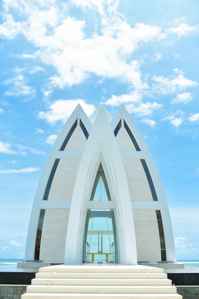 麗思卡爾頓馬傑斯提克教堂,位於努沙杜瓦南區,是世界級酒店品牌麗思卡爾頓酒店集團為新人打造的婚禮舞台。白色的牆體,三層結構的拱門,擁有很高的天井,透明的落地玻璃窗使教堂具有很強的開放感,視線可直接越過聖壇,遠眺印度洋的盛景。置身教堂內,連呼吸都像是慢了半拍。2段拱門互相重疊形成凜然的外觀,象徵新郎新娘的人生互相重合,一起迎向共同的新未來。在這裡,新人可在晴朗天空和蒼翠澄澈的海洋景色中,誓約永恆的愛。