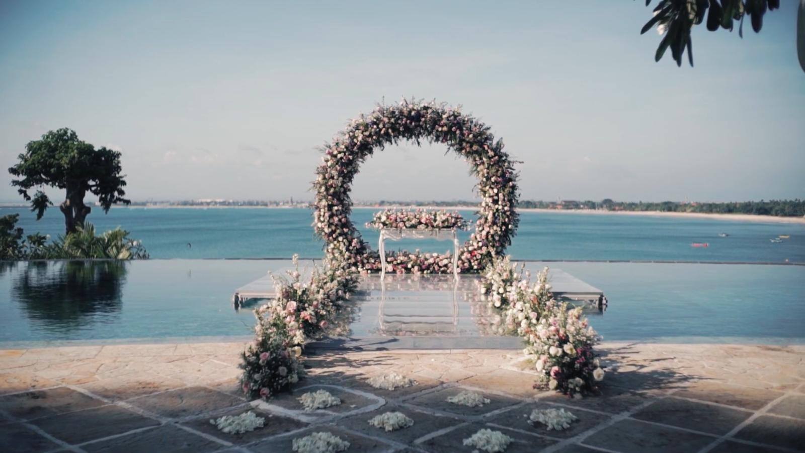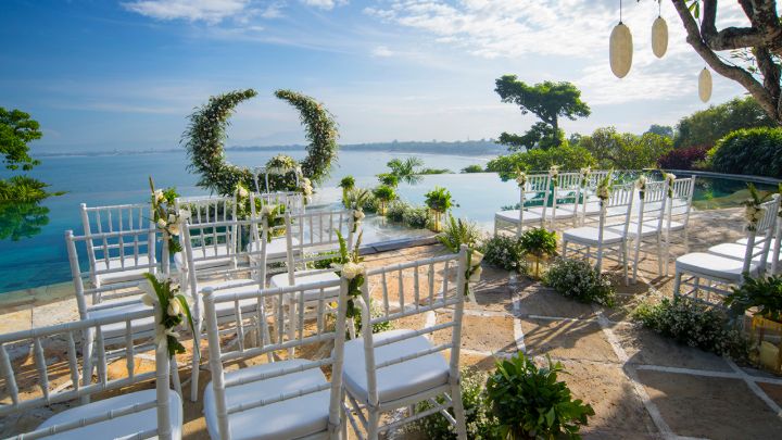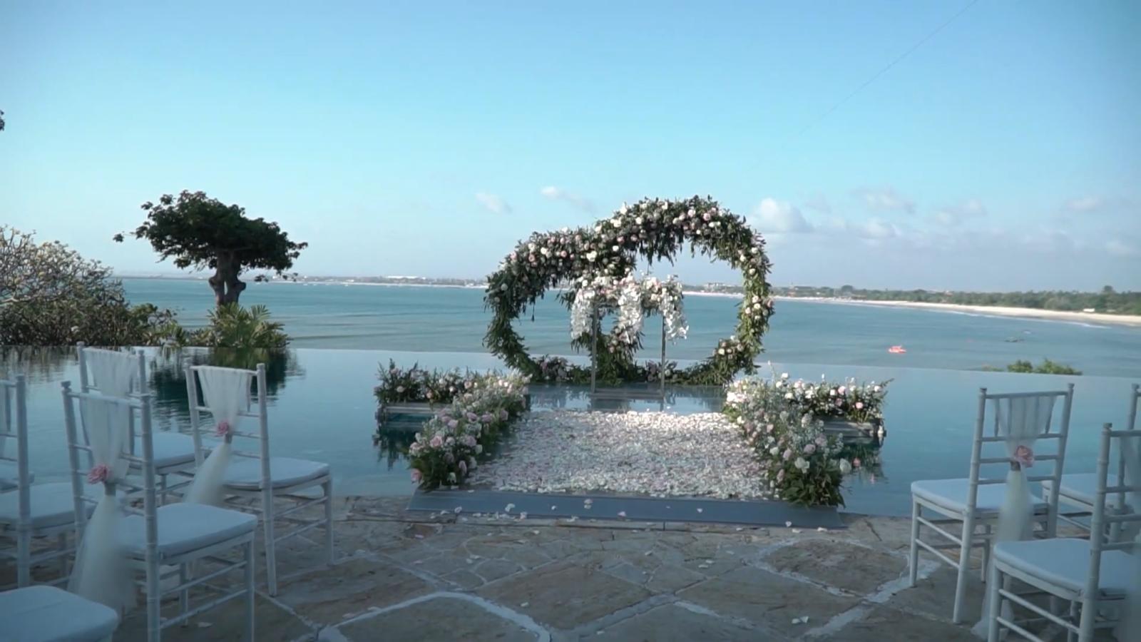 水上婚禮不僅提供了一個完美的背景,讓新人們可以在親朋好友的見證下交換誓言,而且還可以根據新人的需求,安排各種定制化的婚禮服務。這個場地可以容納多達100位賓客,非常適合想要在峇里島舉辦較大規模婚禮的新人。