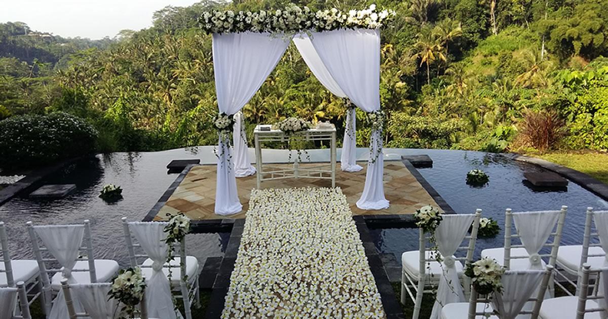 在Ayung Waters舉行的婚禮,新人和賓客將被周圍的自然美景所包圍。從懸崖上垂下的瀑布,到遠處傳來的鳥鳴聲,每一個細節都增添了婚禮的浪漫與神秘。隨著夕陽的緩緩下沉,整個場地被染上了一層金色的光輝,為婚禮增添了一份溫馨和神聖。